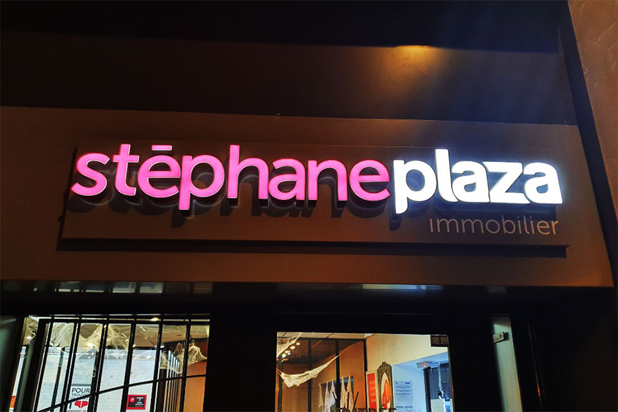 enseigne lettre relief lumineuse stephane plaza 2 couelurs pezenas herault laureguyot agence de pub publicite