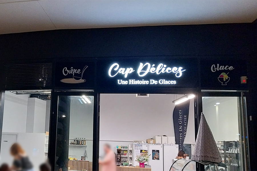 caisson lumineux enseigne leds agence de pub glacier herault luminaire boutique glaces cap dagde occitanie