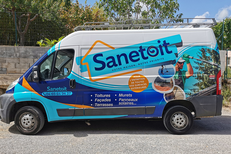 De la création graphique à la pose, nous avons accompagné notre client à chaque étape pour garantir un rendu soigné, durable et parfaitement adapté à la carrosserie. Grâce à ce total covering, cet artisan de Béziers, spécialisé dans le nettoyage des toitures, bénéficie désormais d’une visibilité renforcée dans toute la région, faisant de chaque déplacement une opportunité de communication.