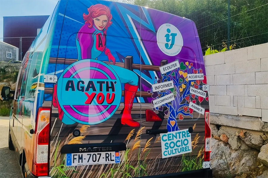De la conception graphique à la pose, nous avons accompagné notre client à chaque étape pour garantir un rendu soigné, durable et parfaitement adapté à la carrosserie. Grâce à ce total covering, le centre socio-culturel Agathois gagne en visibilité dans la ville d'Agde mais également dans les environs et tout l'Hérault, faisant de chaque déplacement une occasion de promouvoir ses actions et événements.